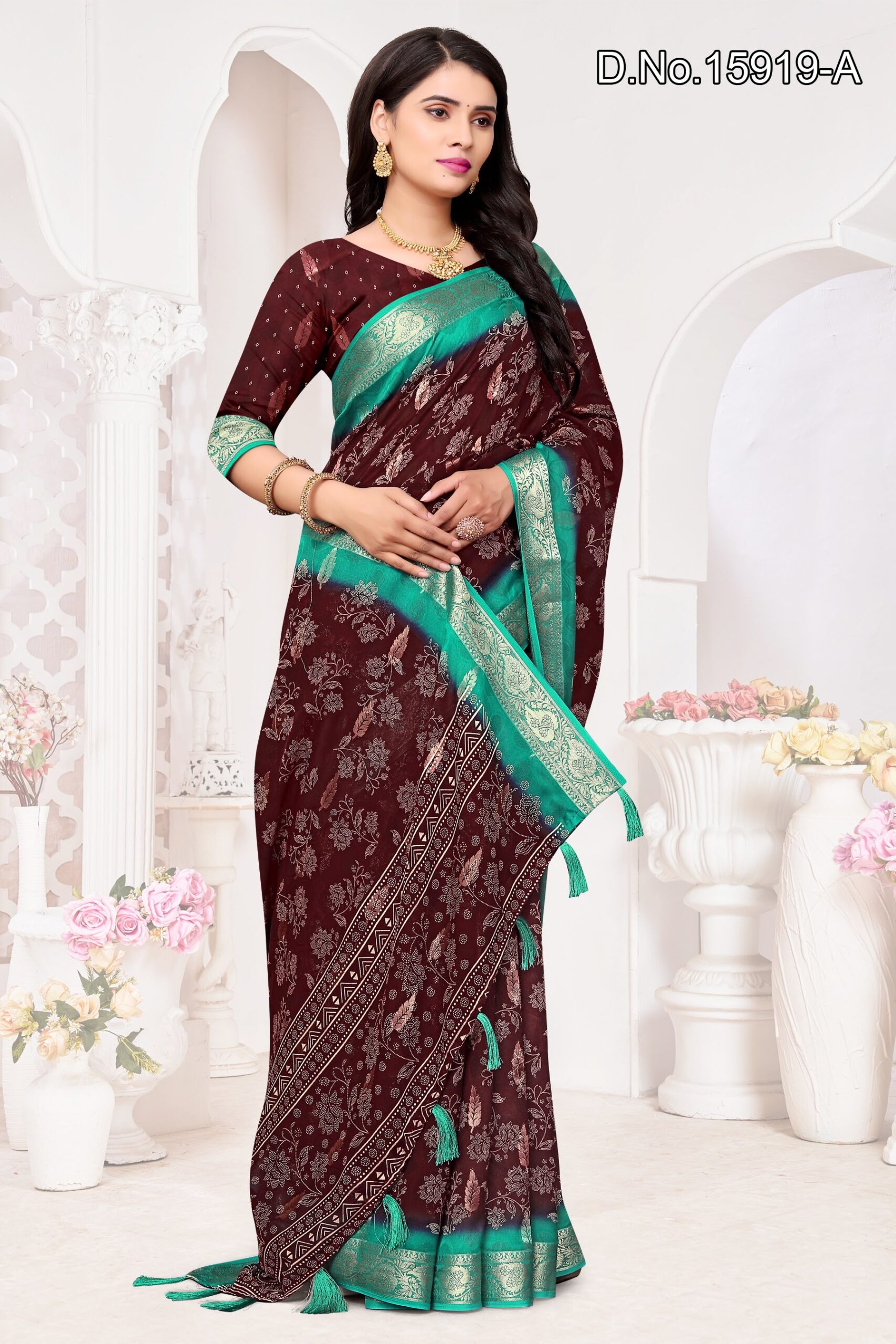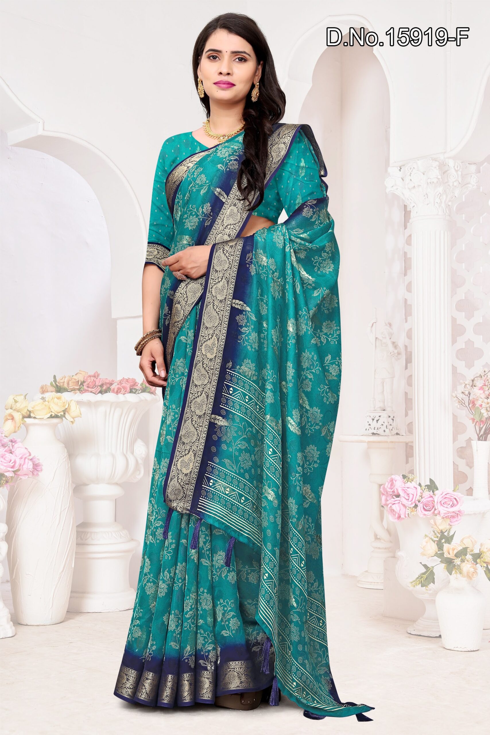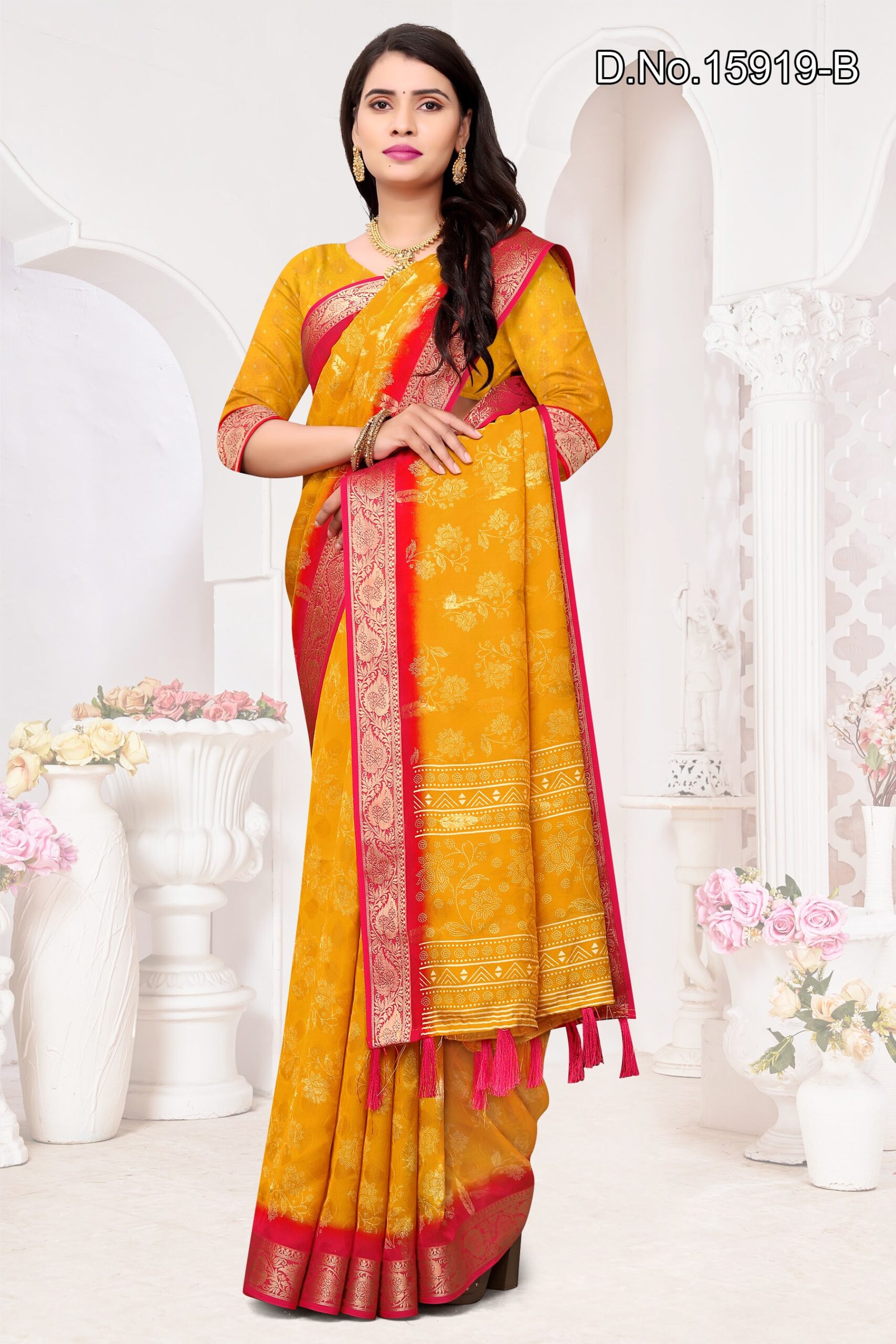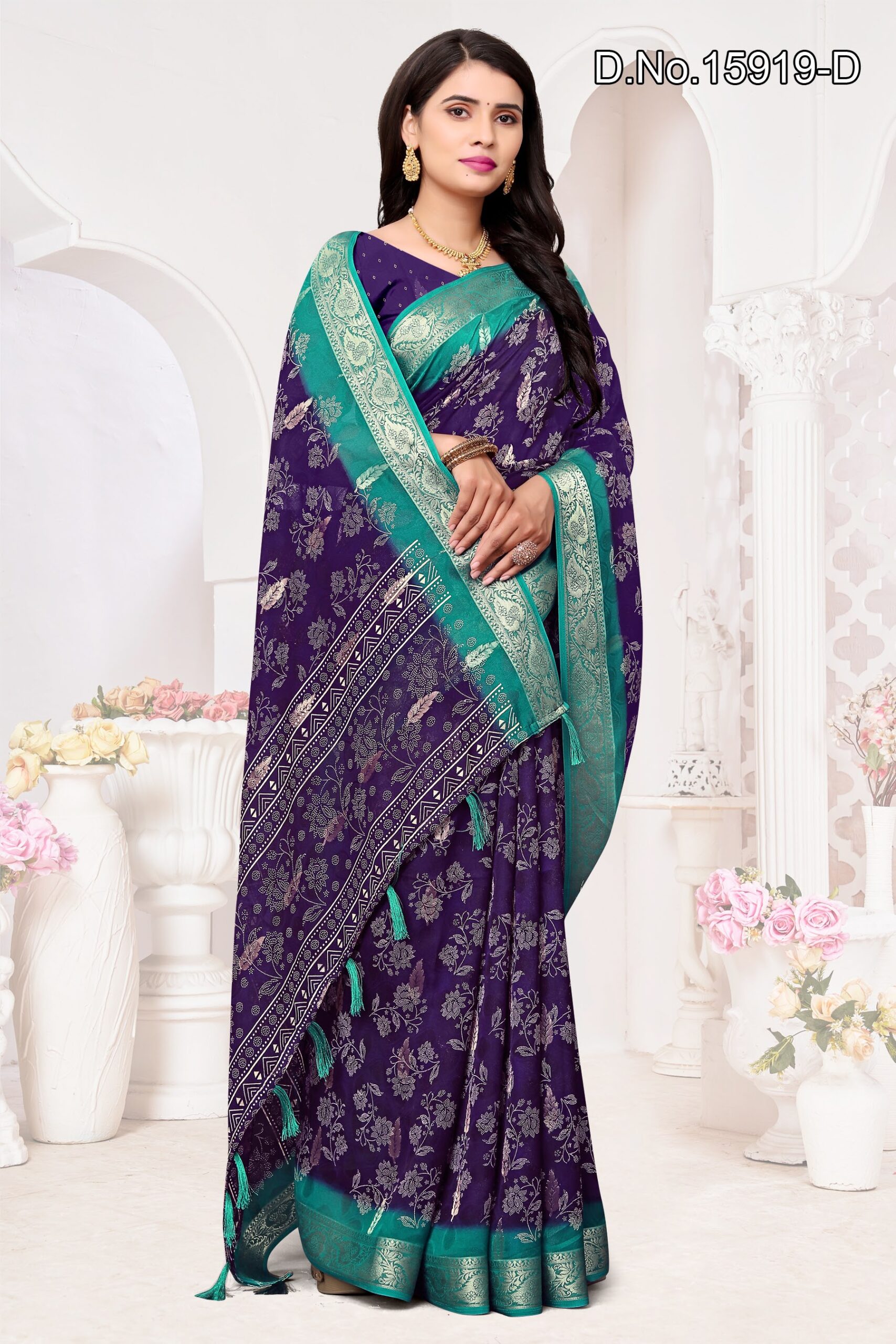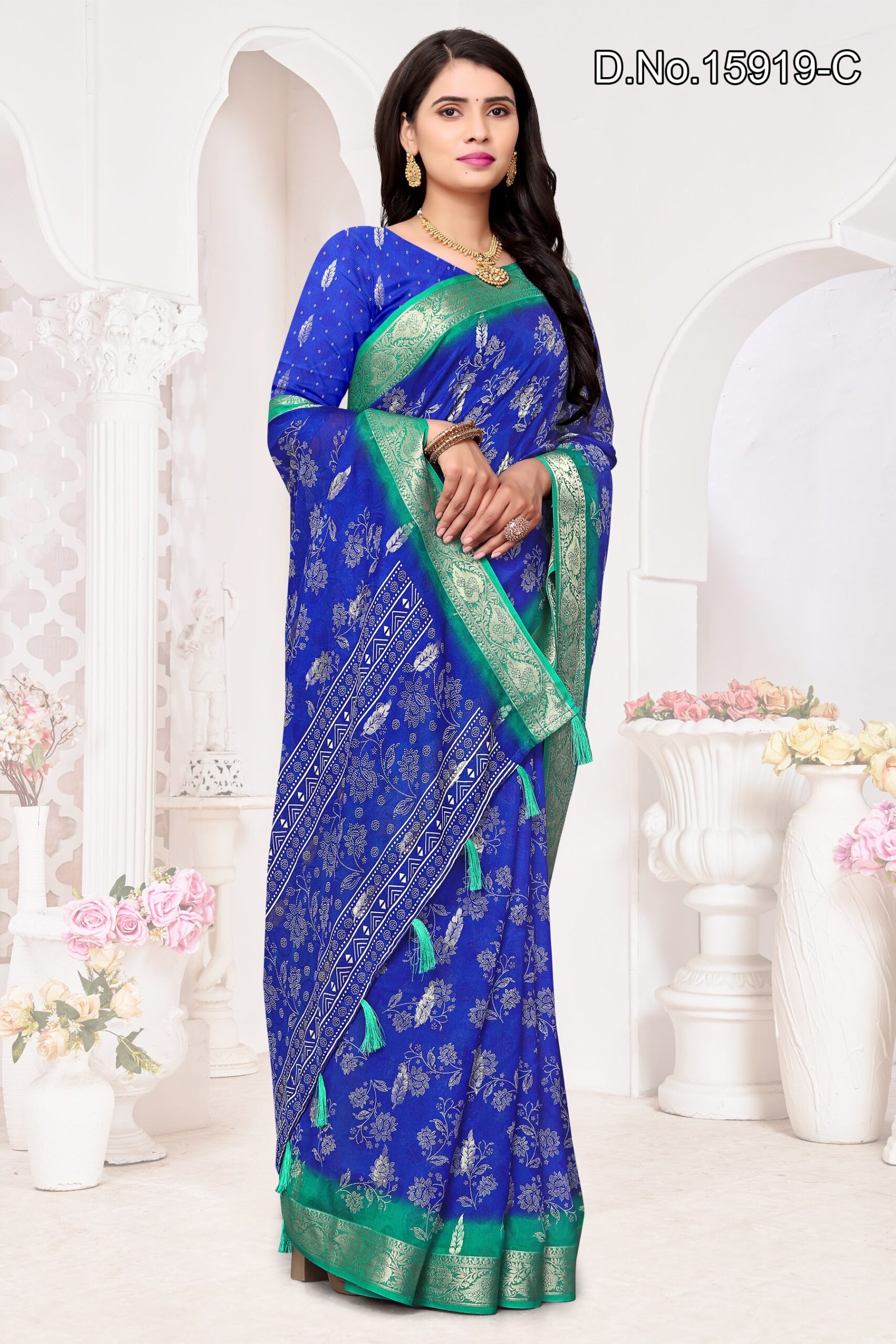 Be the first to review “fabric, georgette with zari border and zari butta inside”