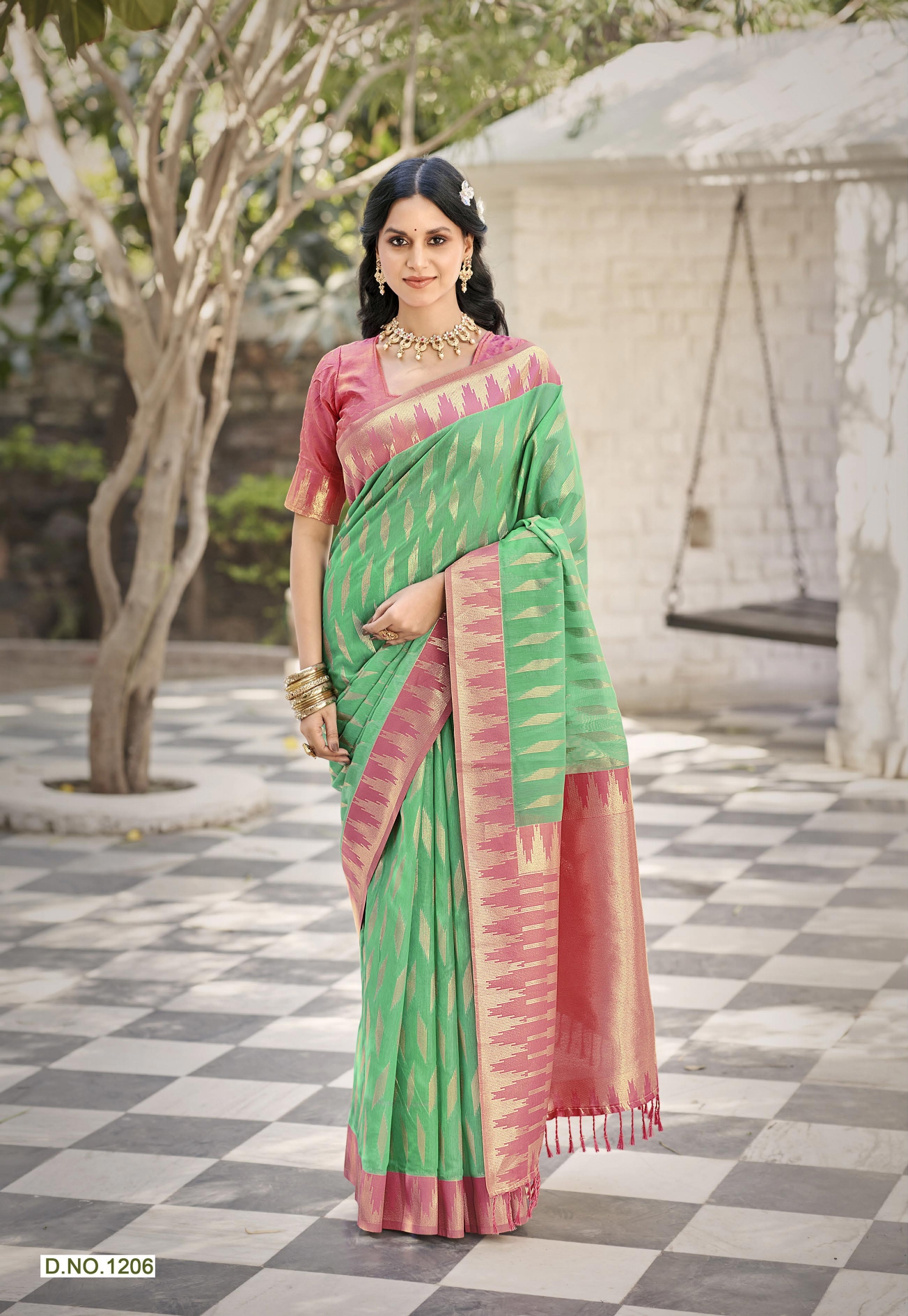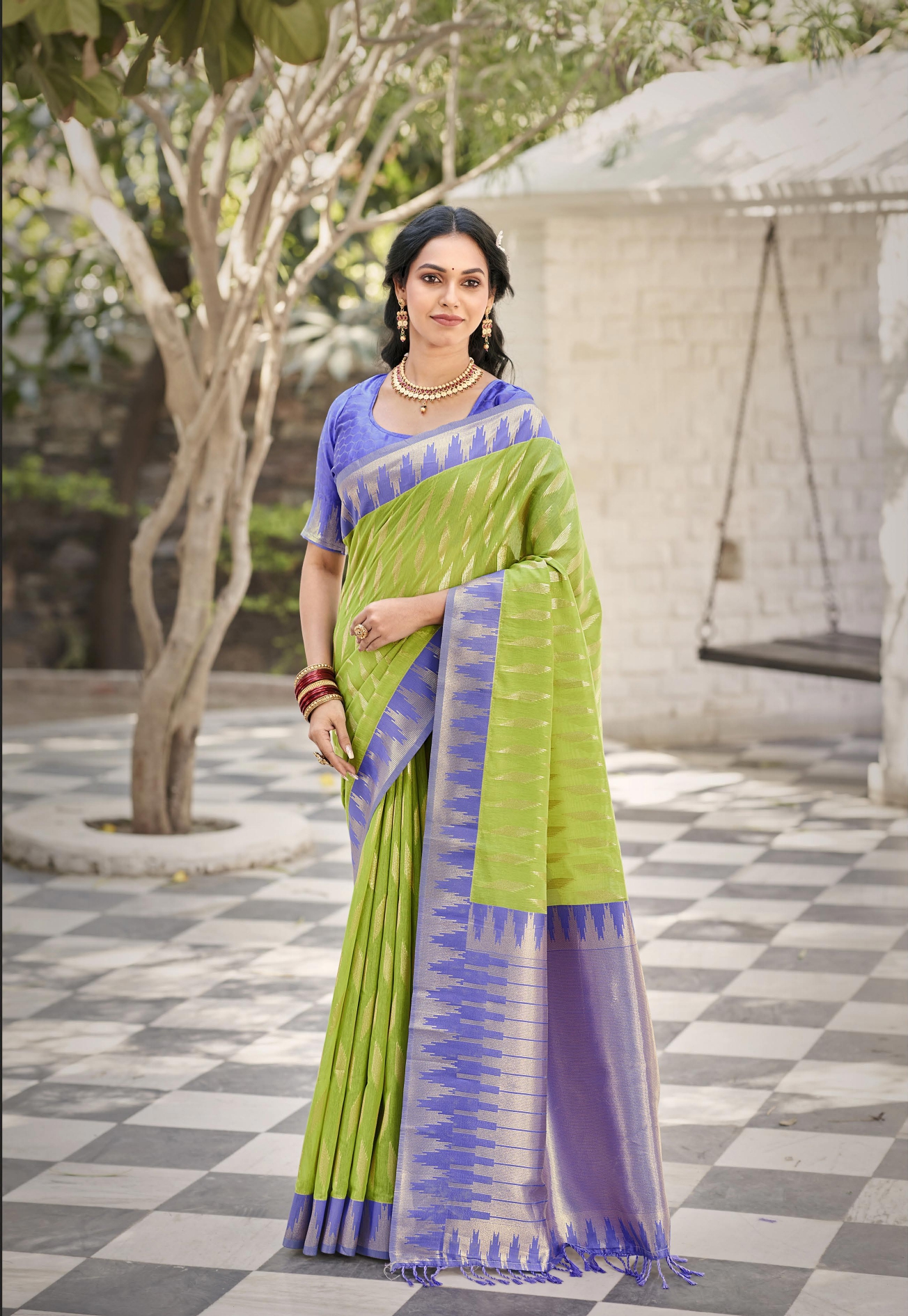 Cotton silk material with temple border