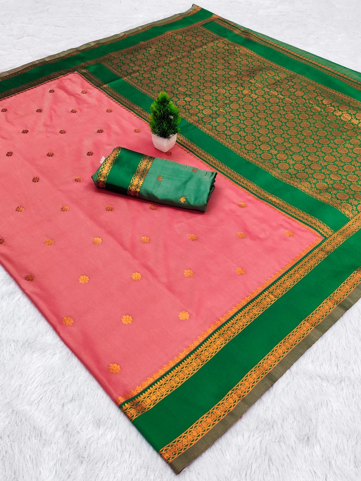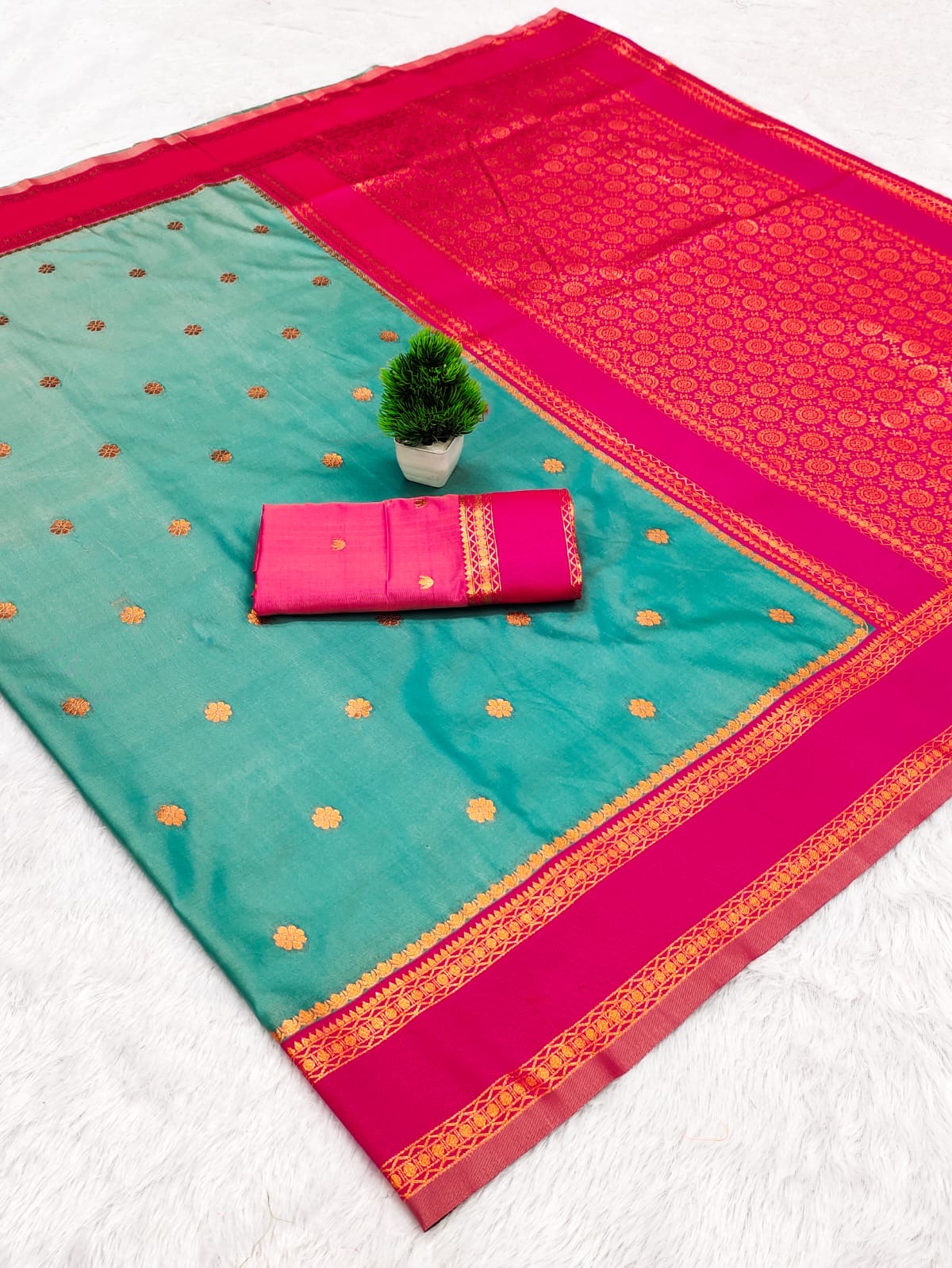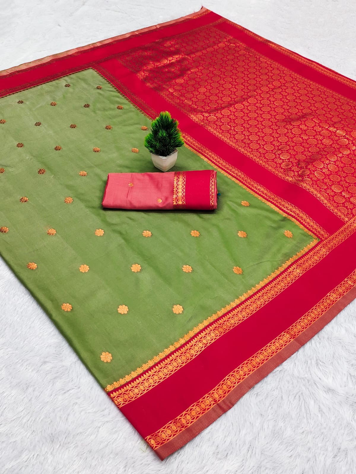 Silk saree with contrast border all over butti with contrast, blouse piece