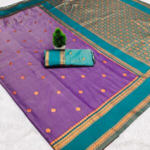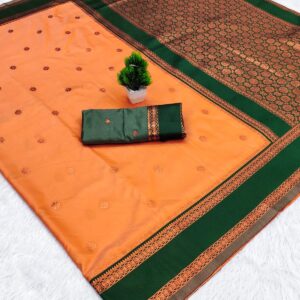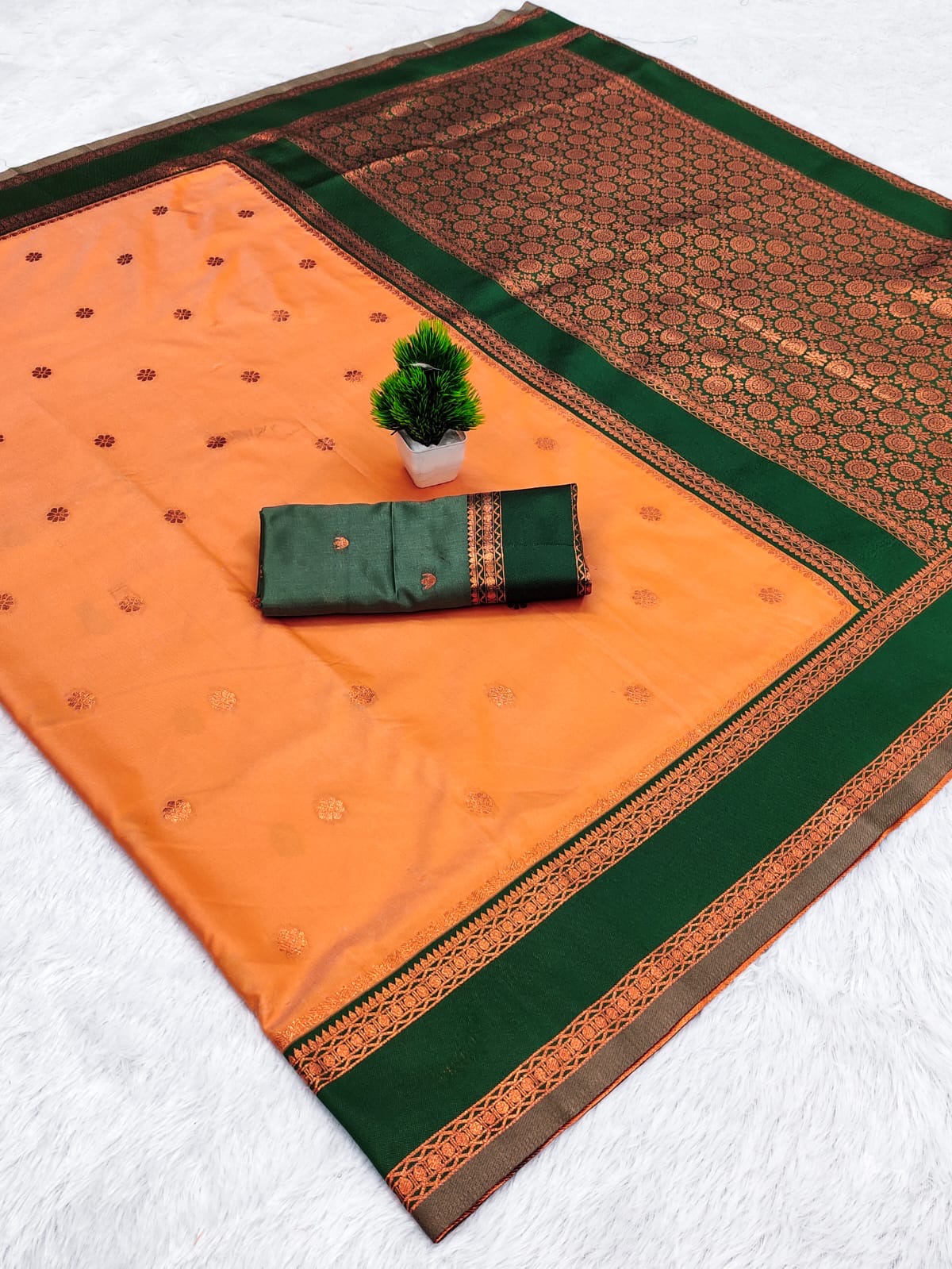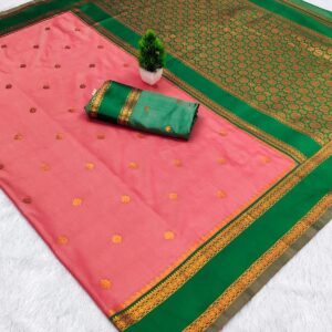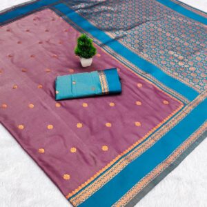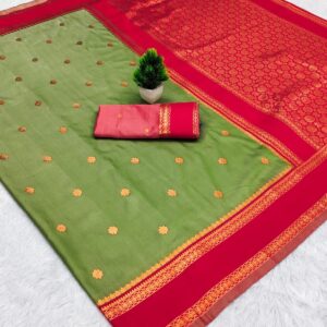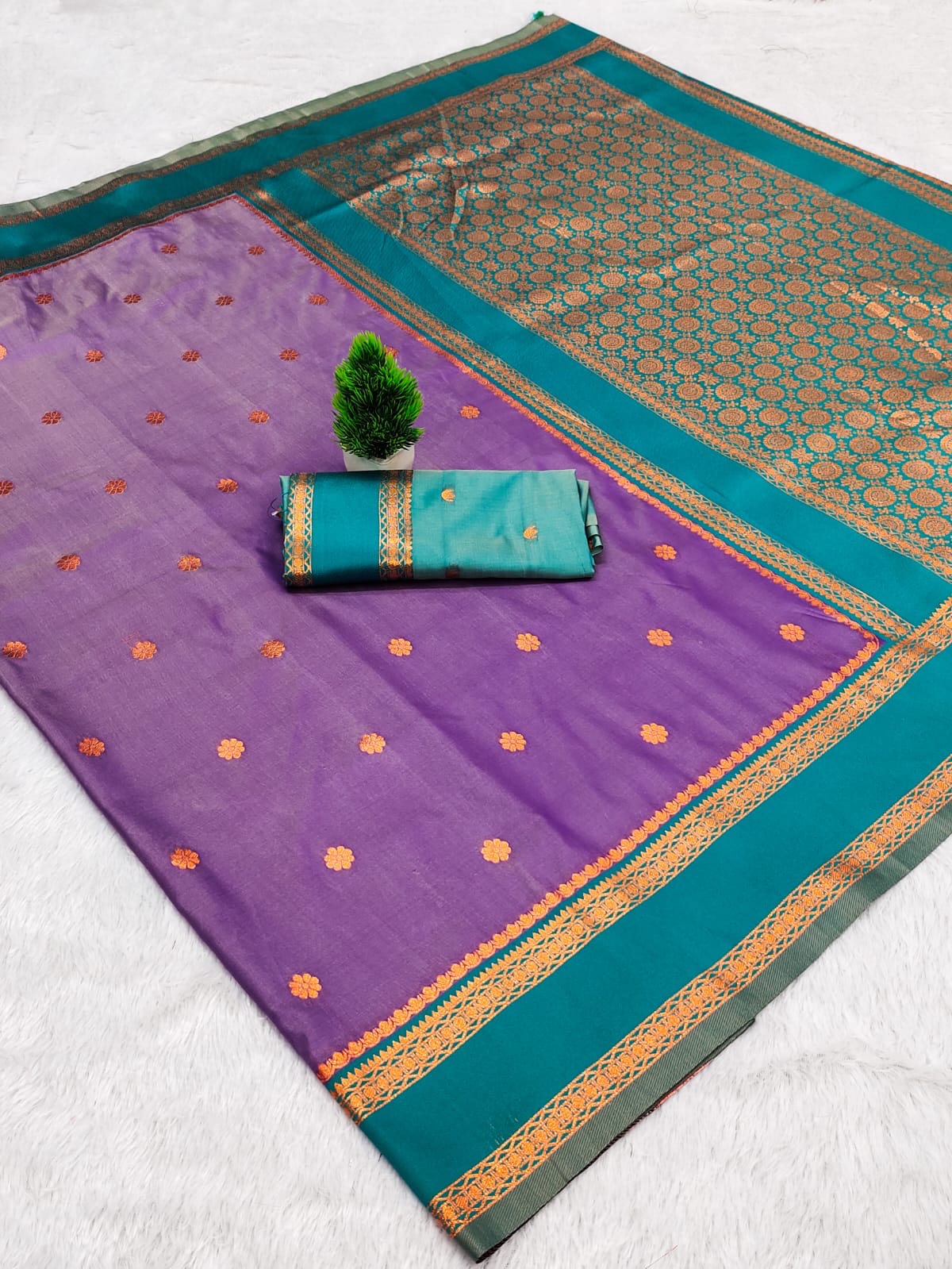 Silk saree with contrast border all over butti with contrast, blouse piece